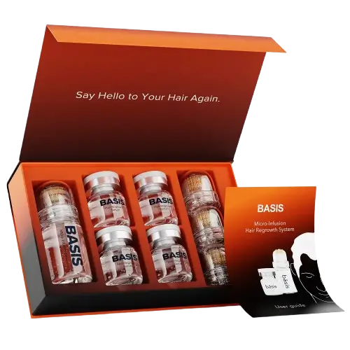 Topicals often sit on the surface. BASIS micro-infuses a 5-in-1 formula past the scalp barrier to support the appearance of hair density.
